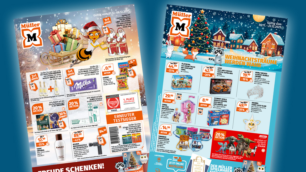 (Laufzeit Drogerie-Prospekt: 01.12.-06.12.2025, Laufzeit Spielwaren-Prospekt: 30.11.-13.12.2025; solange der Vorrat reicht.)